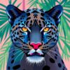 The prismatic rainforest cat combines vintage retro cubism with vibrant feline artistry. This unique fusion creates a striking piece that celebrates both artistic movement and natural beauty.