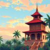 Ultimately, step back and admire your glowing island beacon masterpiece. Additionally, the vintage architecture and realistic water create stunning visual depth. Your completed artwork radiates warmth and coastal charm.