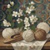 This design celebrates the nostalgic beauty of traditional crafting spaces with tropical elements. The wicker basket details and vintage charm create an authentic heritage atmosphere. Perfect for decorating cozy indoor spaces or gifting to sewing enthusiasts.