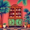 This unique design combines nostalgic arcade cabinet aesthetics with tropical hibiscus blooms and vibrant neon colors. It’s perfect for gaming enthusiasts who appreciate vintage entertainment art.
