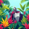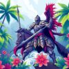 Begin your artistic journey today and bring this legendary crimson knight and his jungle companion to life. The combination of medieval mystique and tropical beauty creates a truly unique piece that will captivate viewers and spark conversations about ancient legends and mythical creatures in art.