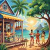 Ultimately, step back and admire your completed tropical storefront scene. Furthermore, the sepia tones and retro elements create authentic vintage appeal. Your finished piece radiates nostalgic charm perfectly.