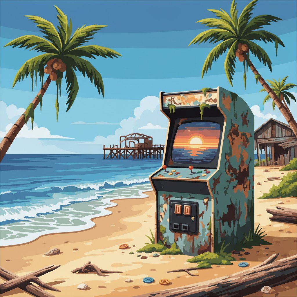 Begin your artistic journey today with this enchanting coastal gaming scene. Moreover, experience the joy of creating classic arcade cabinet art. Subsequently, display your completed work with pride and satisfaction.