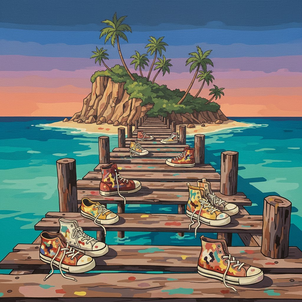 Transform your creative space with this captivating Abandoned Island Pier Shoes Paint By Numbers masterpiece. This unique design showcases weathered vintage footwear against a stunning island pier backdrop. Moreover, it perfectly combines nostalgic culture with artistic expression.