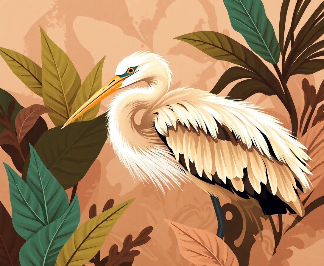Abstract Tropical Heron Sepia Paint By Numbers
