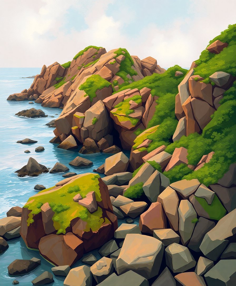 Abstract Verdant Shoreline Rocks Paint By Numbers
