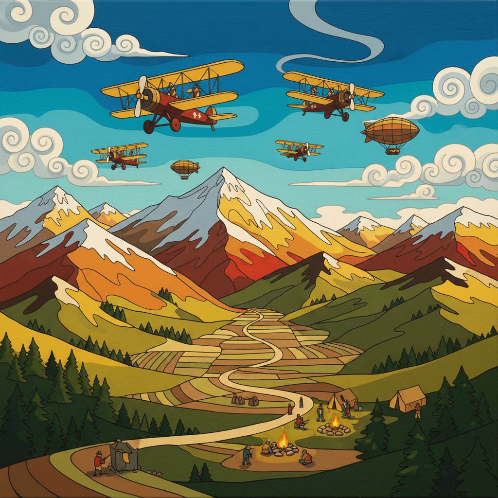 Transform your artistic journey with this stunning Aerial Himalayan Vintage Expedition Paint By Numbers kit. This captivating design captures the mystique of early mountain exploration through an airship’s perspective. Furthermore, the sepia-toned artwork evokes the golden age of adventure and discovery.