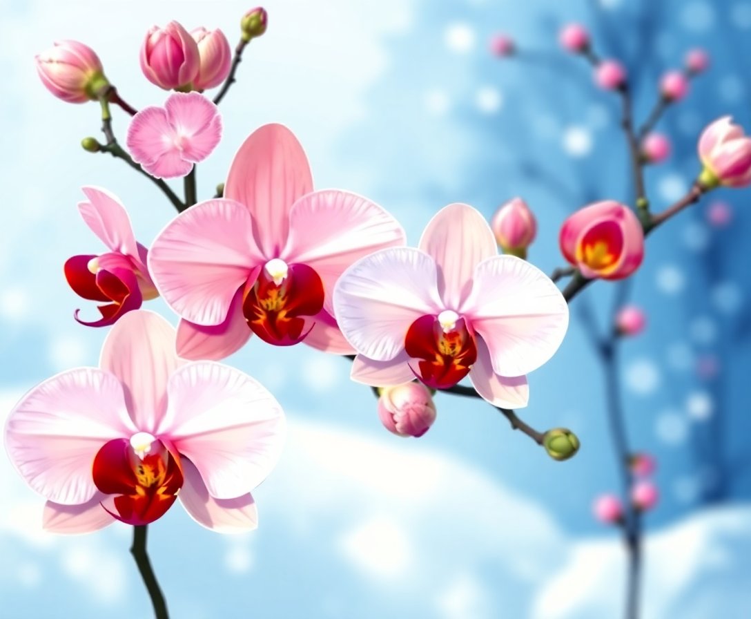 Ultimately, step back and admire your completed masterpiece. The realistic orchid blooms will showcase stunning pink hues against frosty backgrounds. Moreover, your finished painting becomes a captivating focal point for any room.