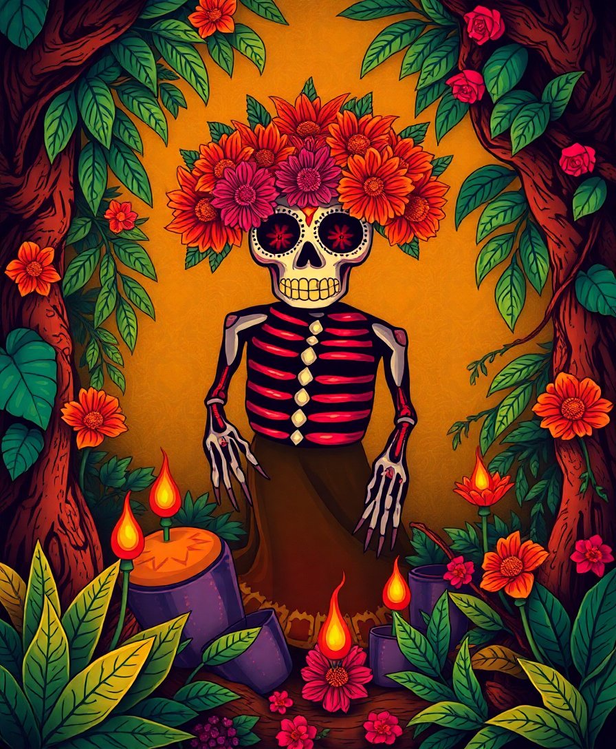 This artwork captures the mystical essence of copal resin ceremonies and ancestral jungle traditions. It honors heritage while creating beautiful decor perfect for holiday celebrations.
