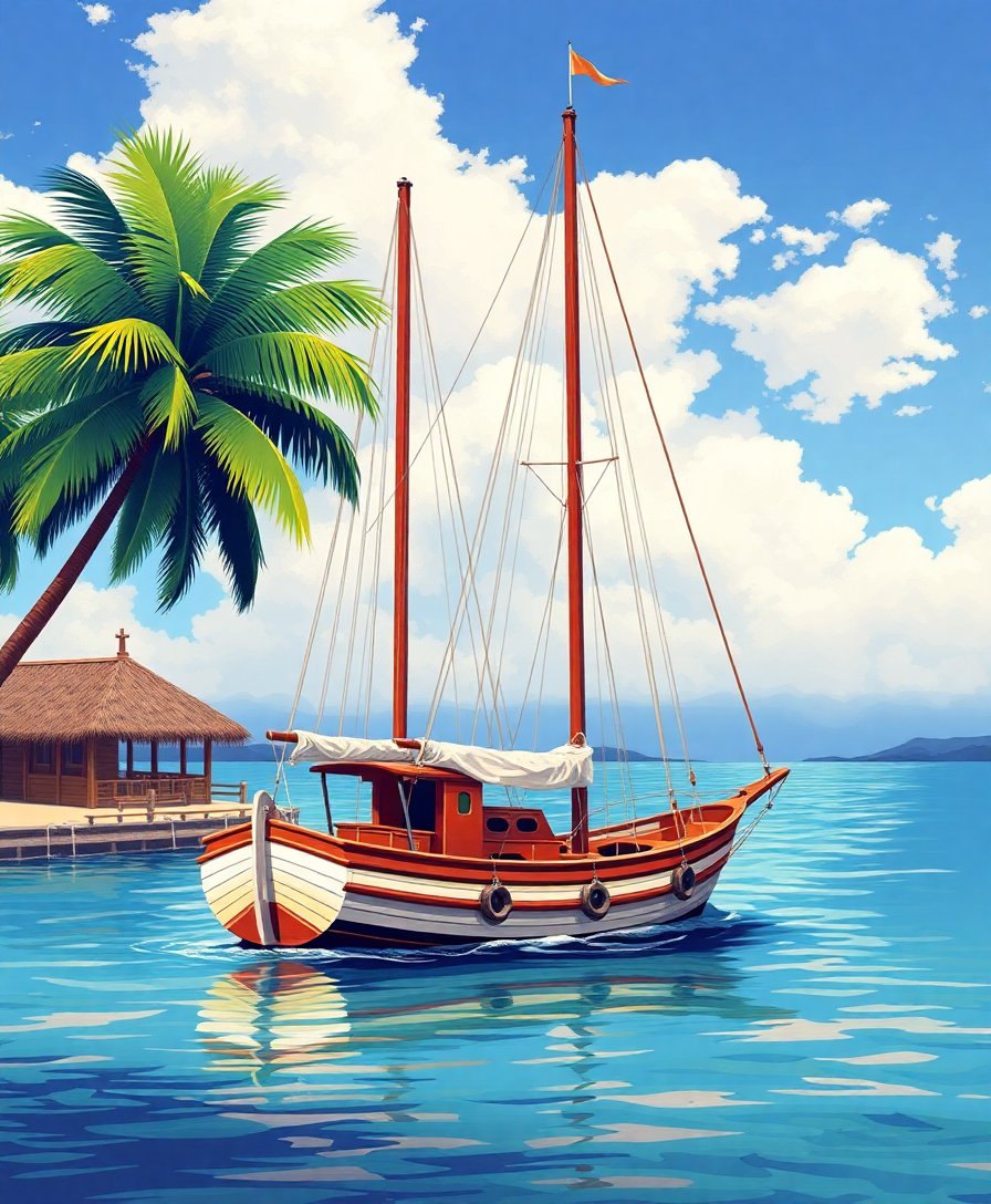 Anchored Tropical Bay Schooner Paint By Numbers