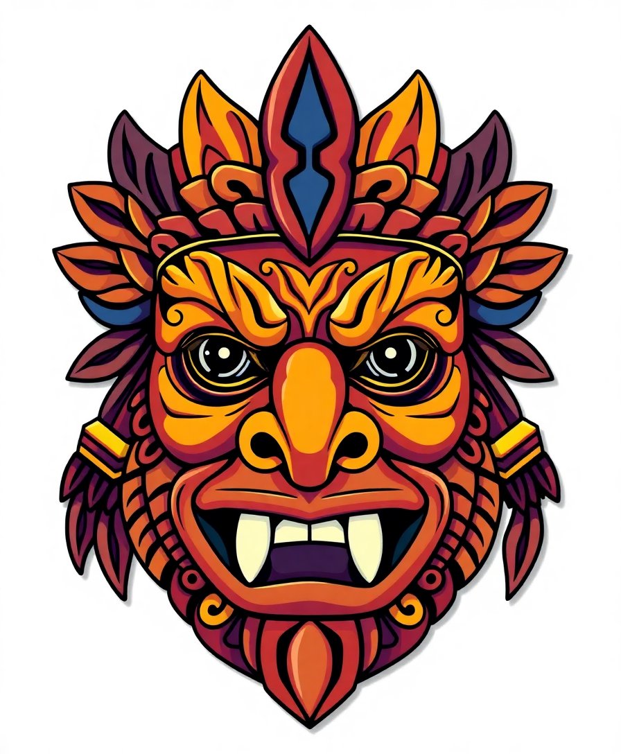 This artwork is based on traditional Pacific island mask designs, featuring authentic tribal patterns and symbolic elements. The colors and details reflect genuine Polynesian artistic heritage.