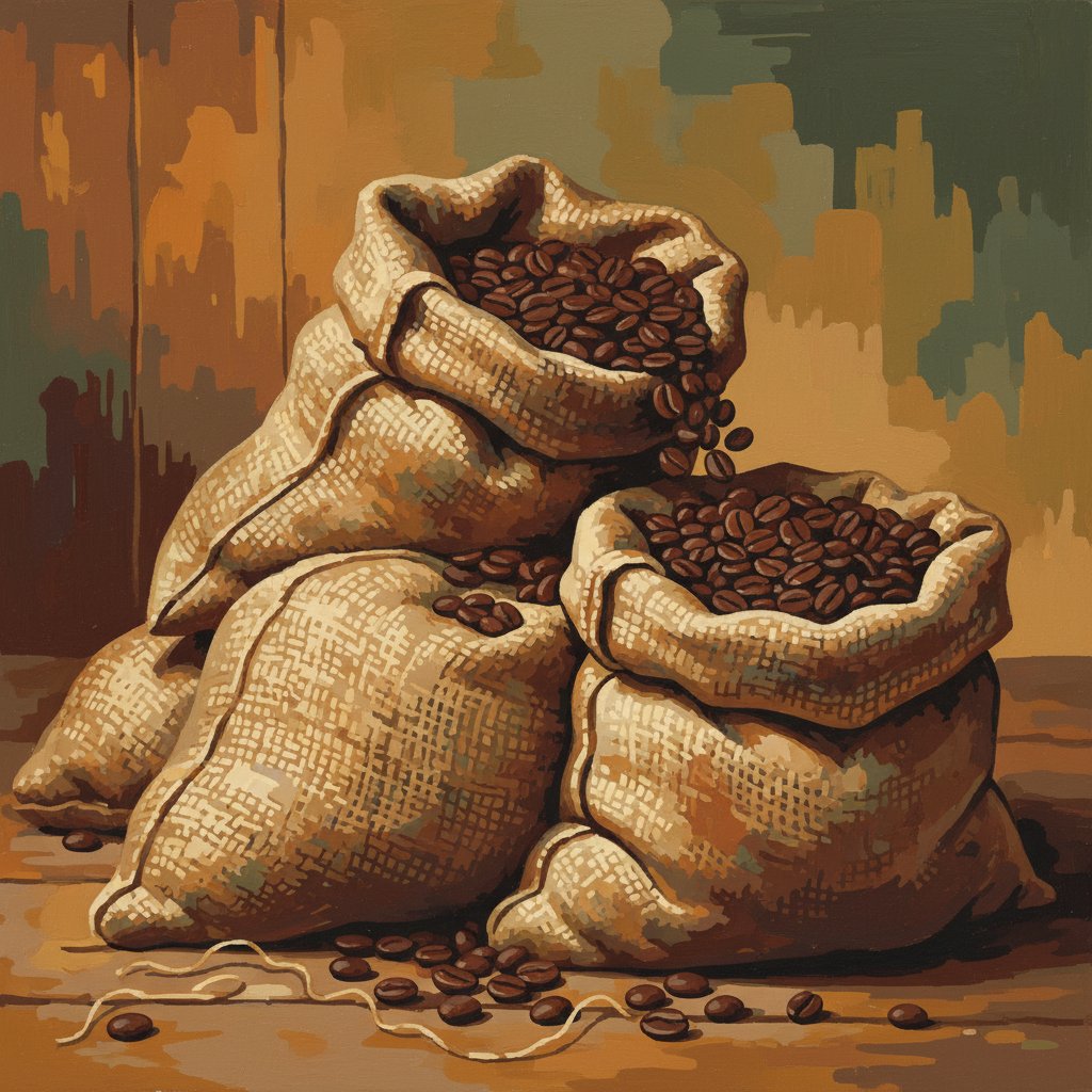 The classical realism style captures authentic coffee trade imagery in beautiful sepia tones. This creates a sophisticated artwork that celebrates both vintage aesthetics and coffee culture history.