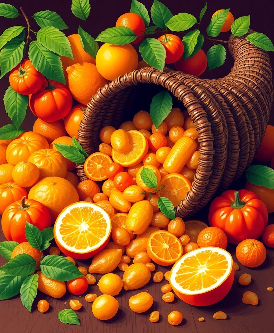 Transform your artistic vision into reality with this stunning Antique Citrus Cornucopia Spill Paint By Numbers masterpiece. This captivating design features vintage charm combined with vibrant tropical citrus fruits cascading from an ornate basket. Perfect for creating a warm, harvest-themed atmosphere in any room.