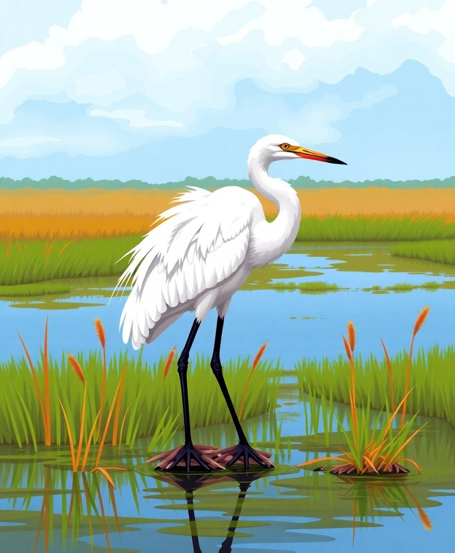 Antique Florida Egret Marsh Paint By Numbers