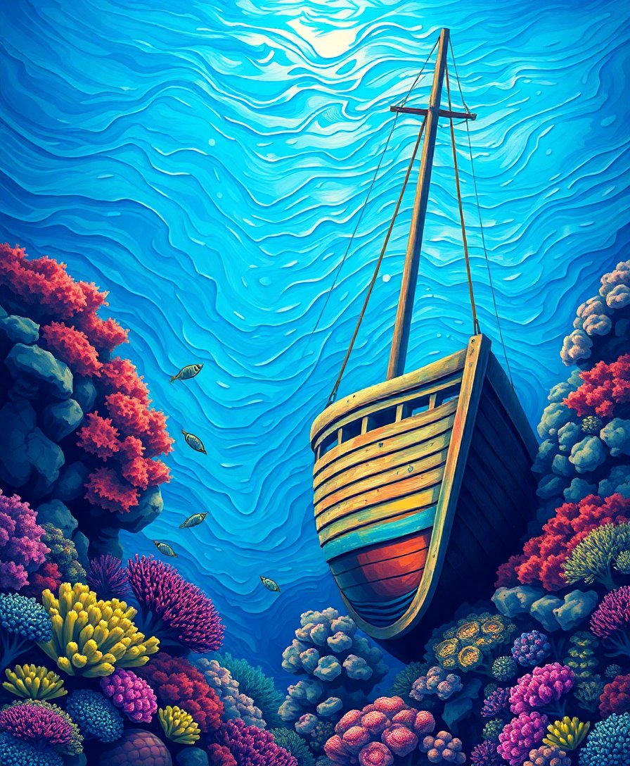 This realistic painting combines historical maritime charm with vibrant coral reef ecosystems. The vintage aesthetic appeals to collectors and coastal décor enthusiasts alike. Additionally, the detailed canvas design challenges intermediate painters while remaining accessible to beginners.