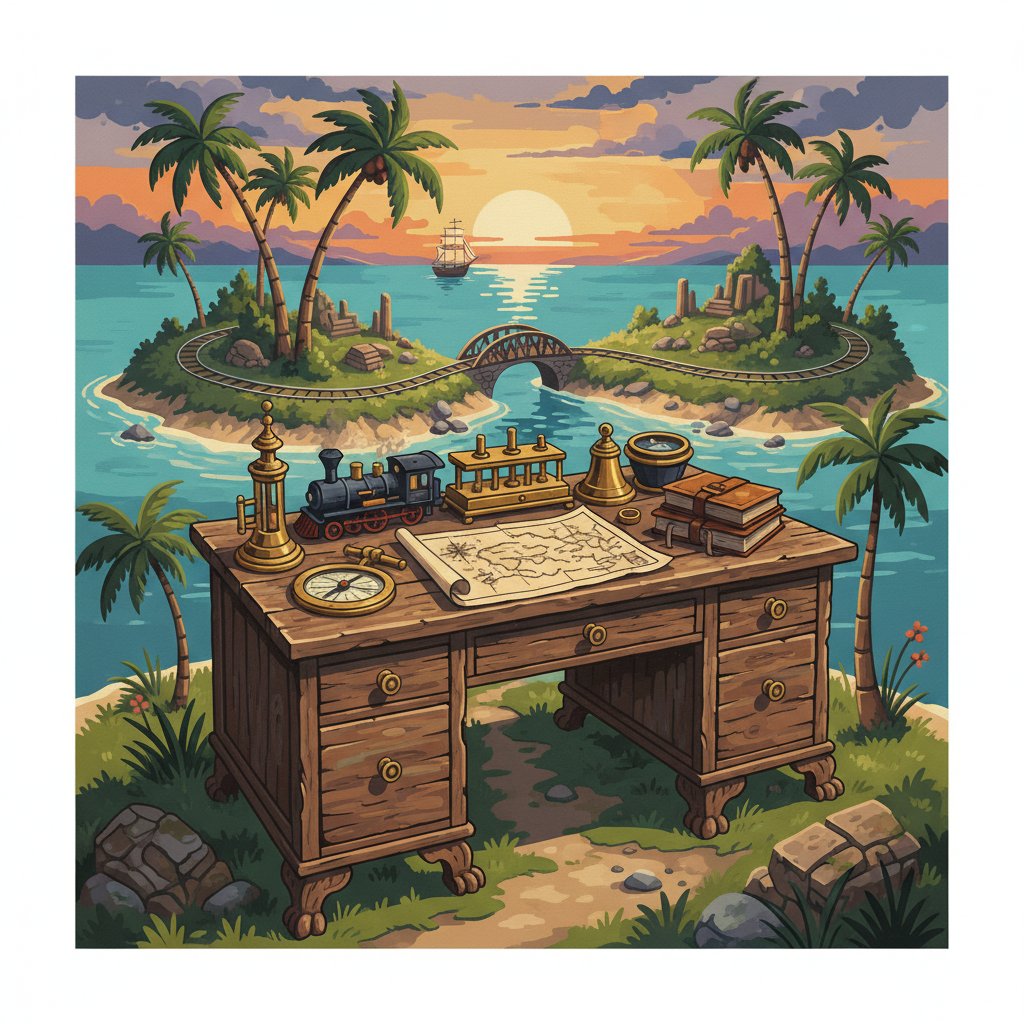 Transform your creative space with this captivating Antique Island Railway Desk Paint By Numbers masterpiece. This intricate design celebrates the golden age of tropical railway stations, featuring rich mahogany tones and authentic vintage details. Each brushstroke brings historical charm to life through carefully crafted artistry.