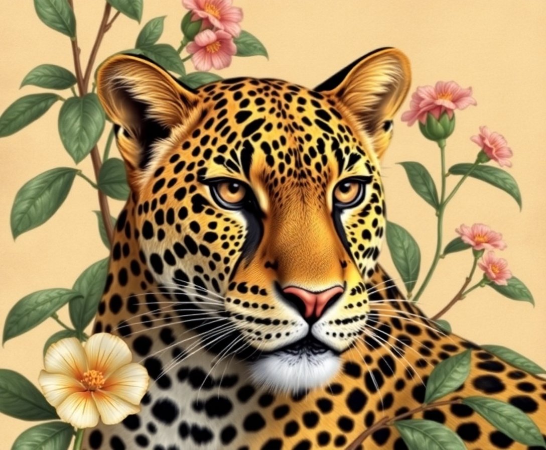 Antique Leopard Botanical Study Paint By Numbers