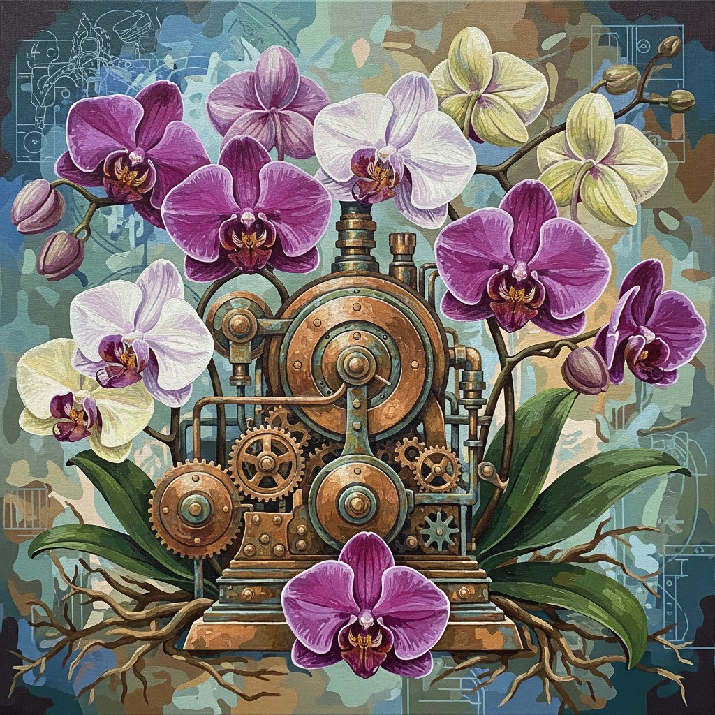 Transform your creative space with this captivating Antique Machine Realistic Orchid Paint By Numbers design. This stunning composition blends vintage machinery nostalgia with the delicate beauty of phalaenopsis orchids. Subsequently, you’ll discover the perfect balance between industrial heritage and natural elegance.
