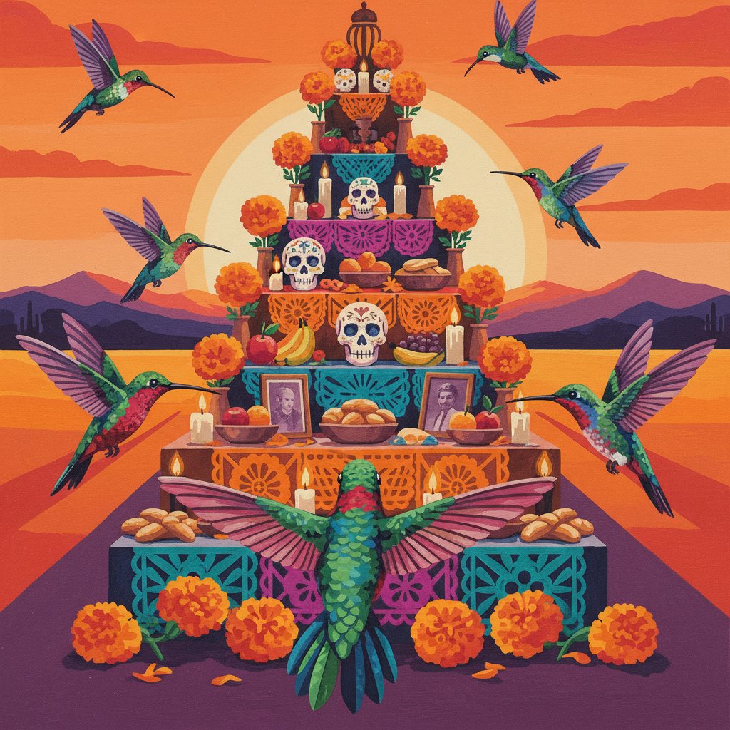 Yes, this design respectfully honors the tradition with authentic altar imagery and hummingbird symbolism. It makes a meaningful addition to any heritage celebration or remembrance display.
