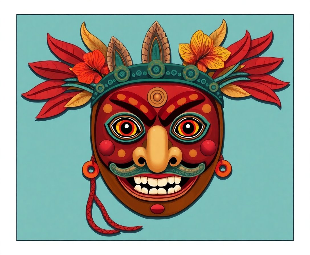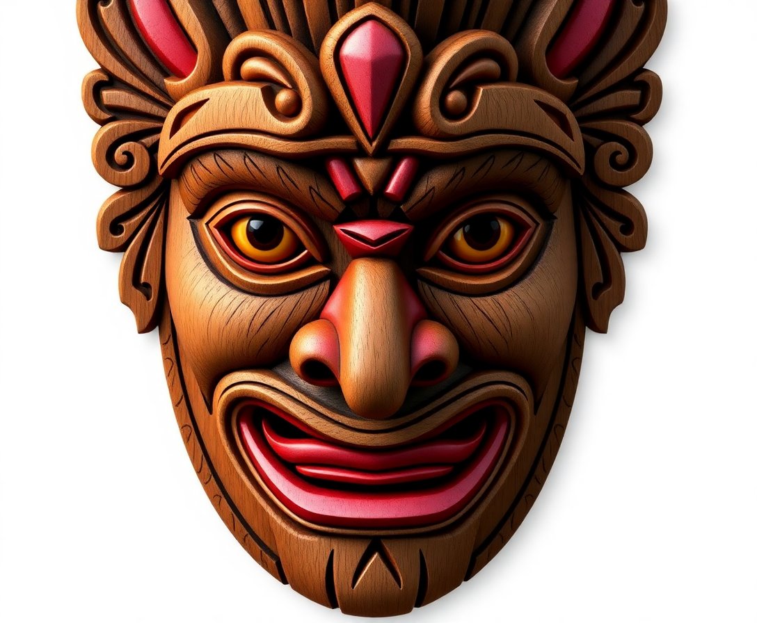 The sepia tones and historical cartography elements create an authentic vintage aesthetic. Additionally, the Polynesian mask motifs add cultural depth to your artwork.