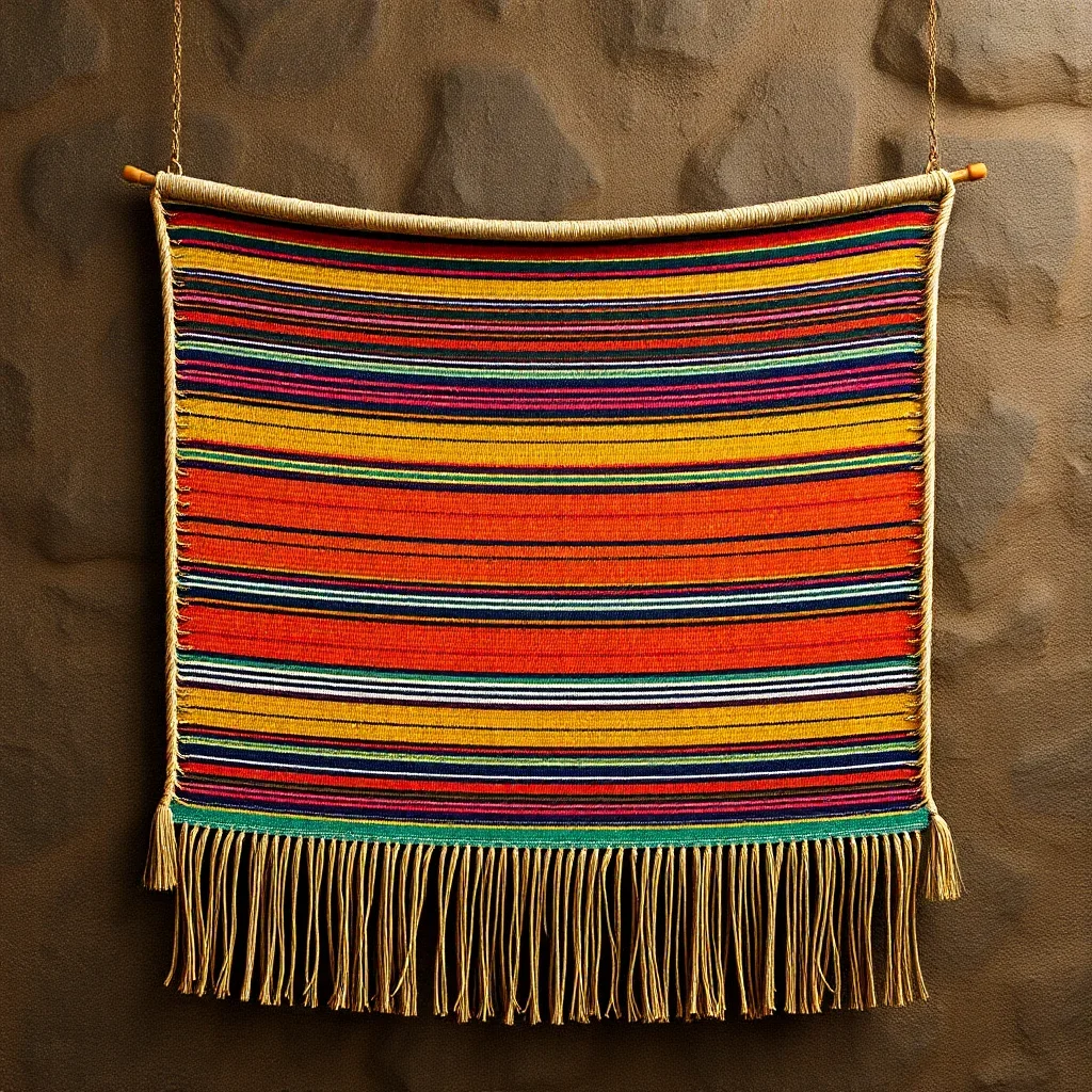 This artwork celebrates ancient Andean quipu textile traditions, honoring Pre-Columbian heritage through detailed alpaca drape imagery. It’s both educational and artistically rewarding.