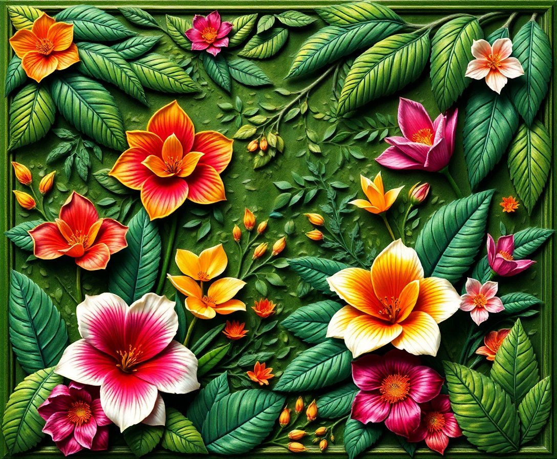 Experience the enchanting beauty of vintage botanical art with this Antique Rainforest Floral Relief Paint By Numbers kit. This detailed masterpiece combines rustic charm with tropical elegance, creating a stunning relief artwork that captures the essence of lush rainforest flora.