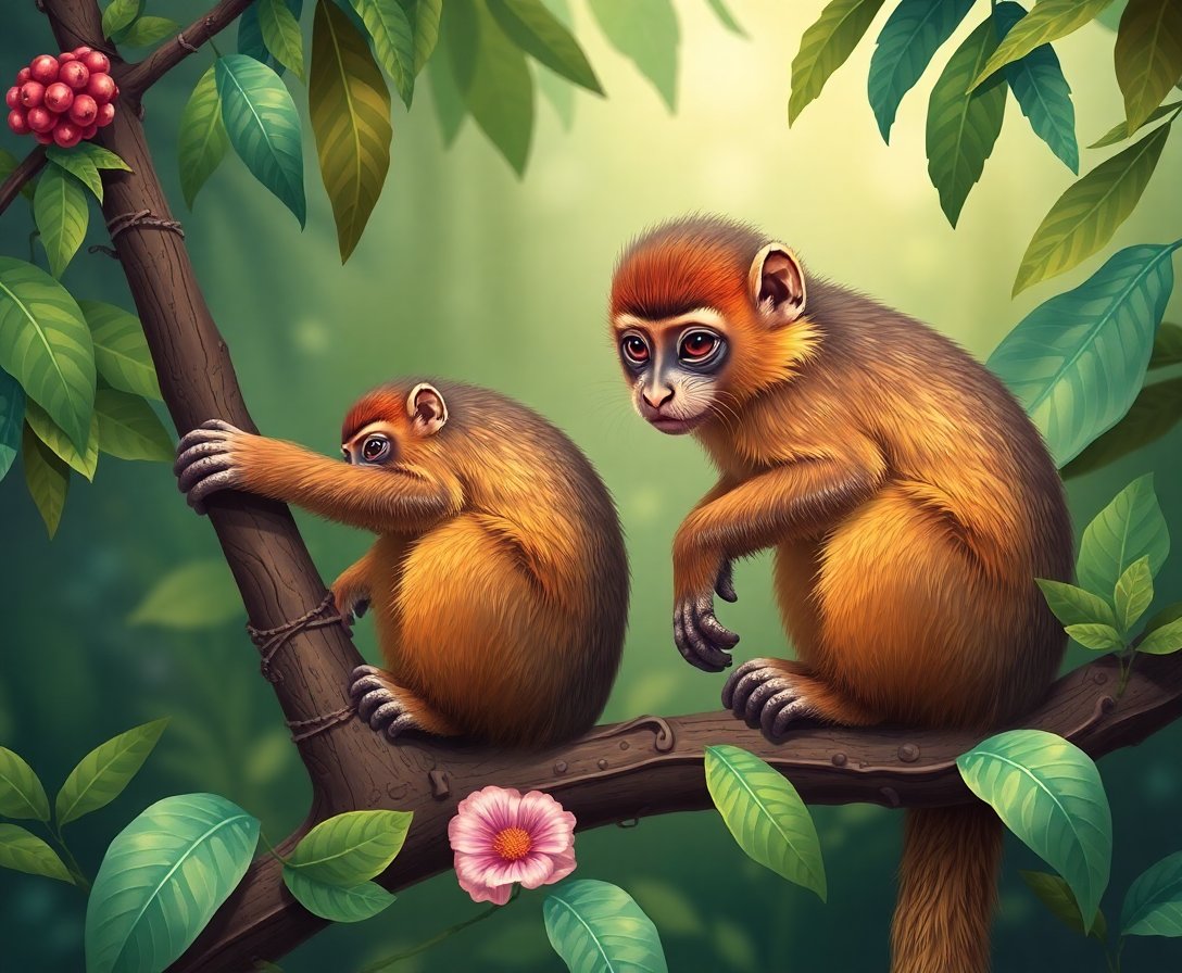 Antique Rainforest Squirrel Monkeys Paint By Numbers