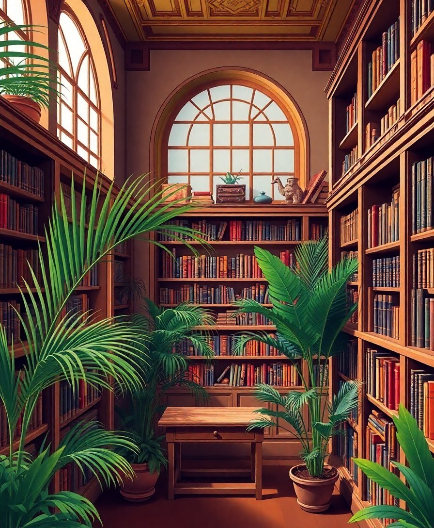 Transform your space with this captivating Antique Shelves And Palms Paint By Numbers masterpiece. This intricate design captures the timeless elegance of a scholar’s sanctuary, featuring rich mahogany shelving adorned with classic literature and lush monstera palms. Create your own cozy indoors atmosphere through this therapeutic painting experience.