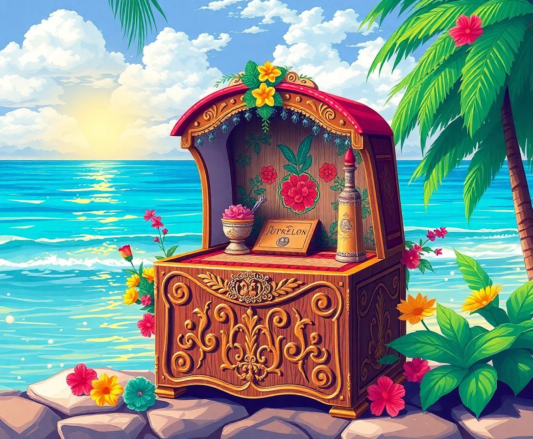 Transform your creative space with this enchanting Antique Shoreline Music Box Paint By Numbers masterpiece. This stunning holiday collection piece captures the nostalgic charm of a vintage brass music box set against serene shoreline waves. Perfect for artists seeking a realistic painting experience with tropical island festivities inspiration.
