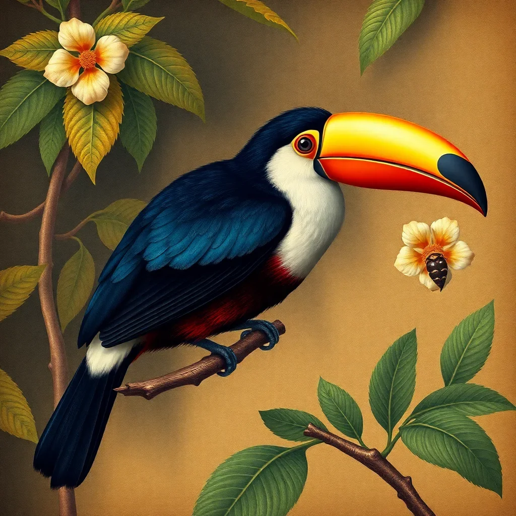 Ultimately, add final details and highlights to bring your toucan to life. Each brushstroke contributes to the vintage scientific aesthetic. Display your finished piece proudly as a testament to both patience and artistic achievement.