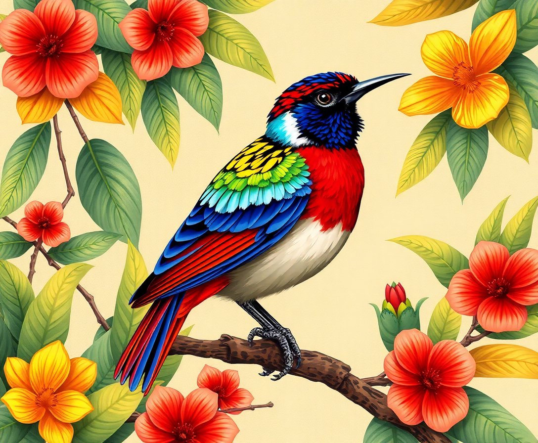 Embrace the meditative joy of creating your own naturalist illustration masterpiece. This antique tropical bird study transforms any room into an elegant gallery space.