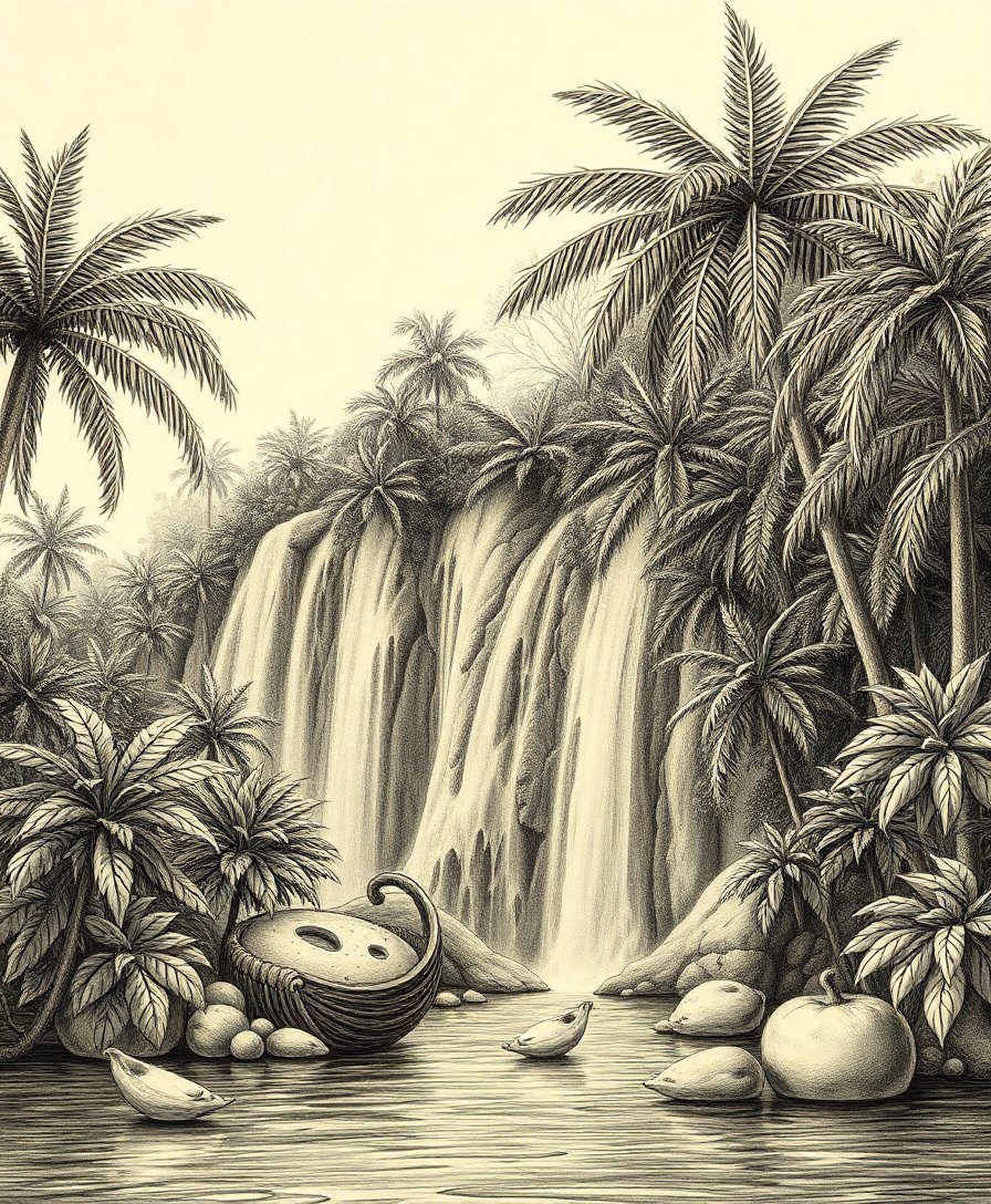 Antique Tropical Cascade Drawing Paint By Numbers