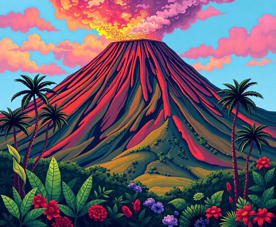 Ultimately, step back and admire your completed tropical volcanic landscape. Additionally, the antique sepia tones create stunning visual impact. Finally, your masterpiece becomes a conversation starter.