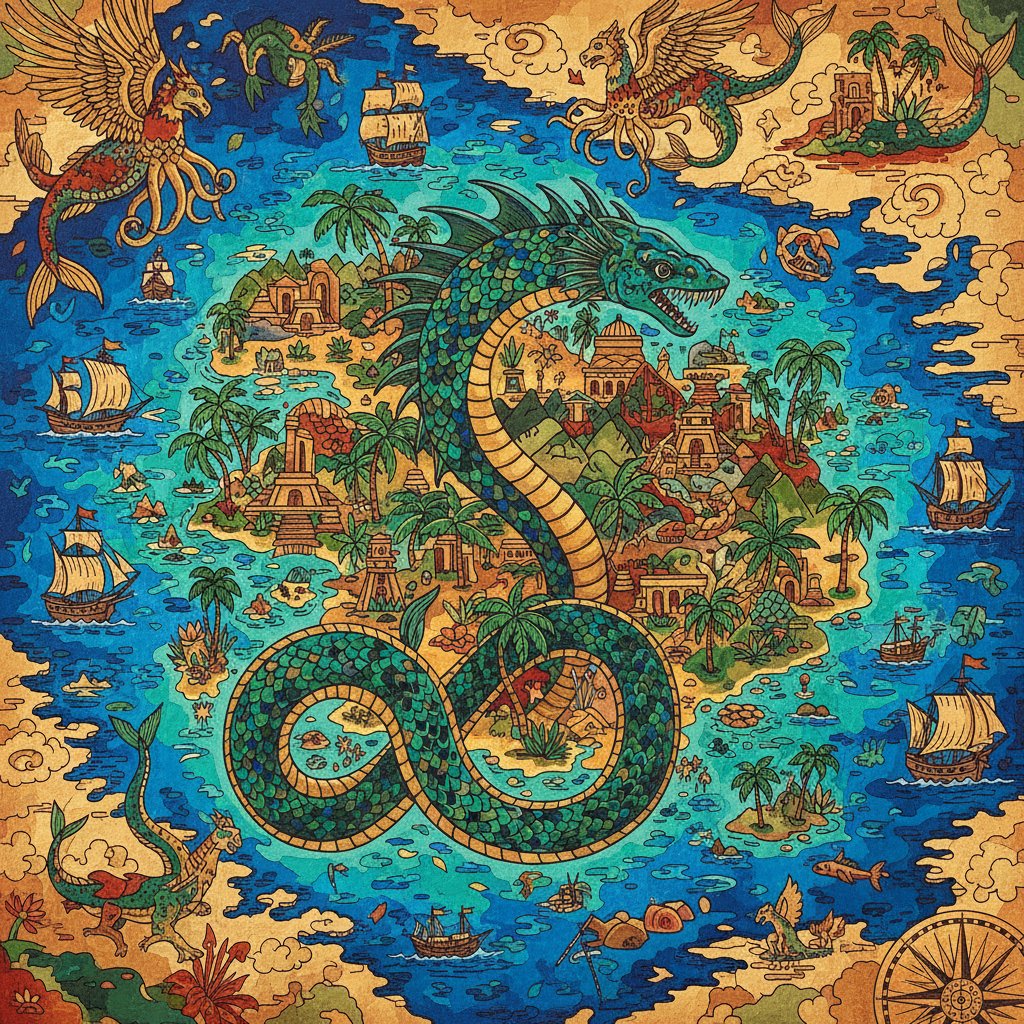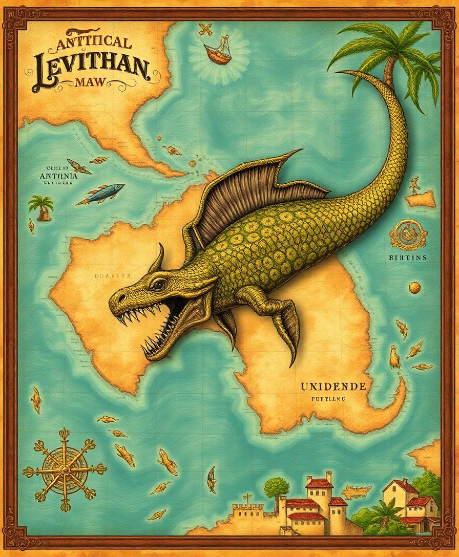 This unique design celebrates the golden age of exploration and discovery. The sepia tones create authentic vintage appeal perfect for any decor. Additionally, the leviathan motifs add mystical charm to the tropical theme. Expert artists designed every detail for maximum visual impact.