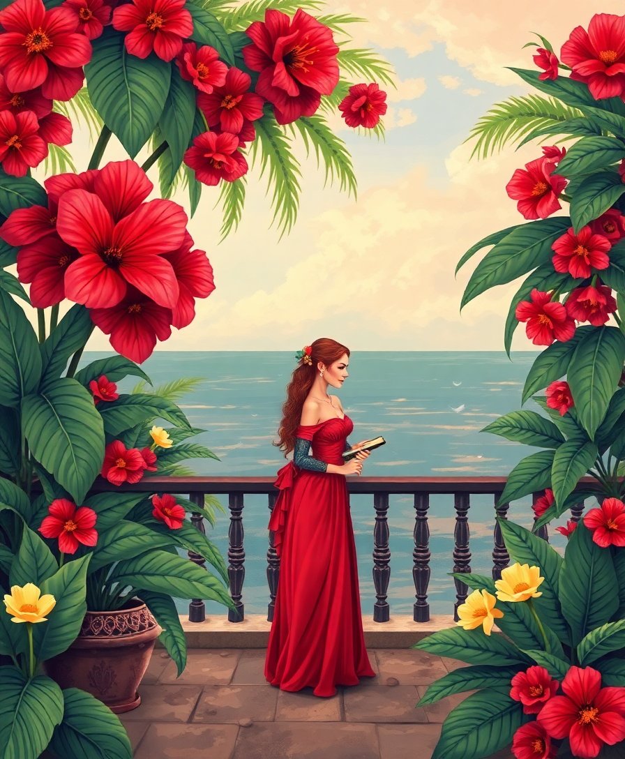 Perfect for vintage art lovers, romantic partners, or anyone who appreciates nostalgic tropical themes. The elegant sepia tones make it suitable for various occasions.