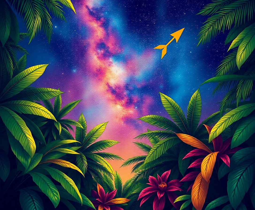 Ultimately, step back and admire your completed tropical masterpiece. Moreover, the celestial arrow creates a striking focal point against the realistic canopy. Finally, your finished artwork becomes a conversation starter in any room.