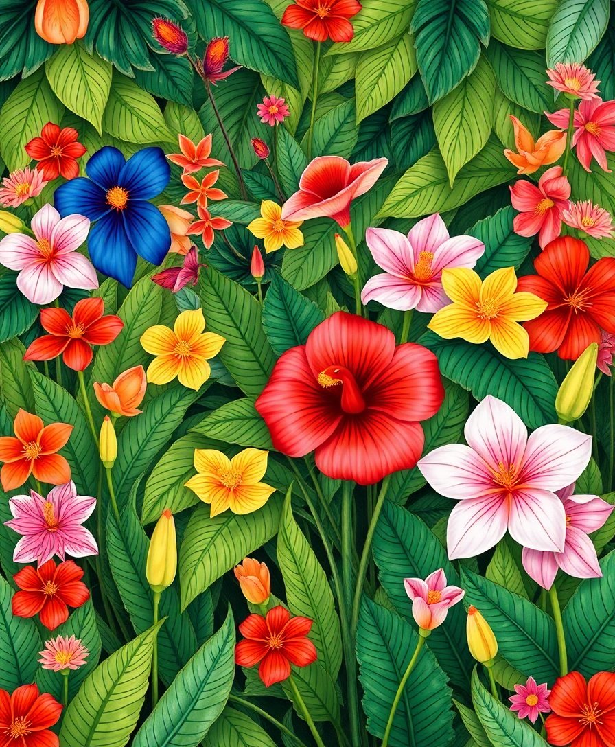 Ultimately, step back and admire your completed tropical botanical masterpiece. Additionally, the rich sunset colors and detailed foliage create stunning visual impact. Therefore, your finished piece becomes a captivating focal point for any room.