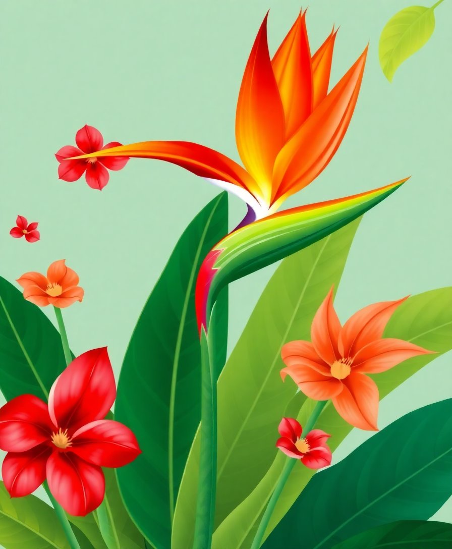 The Art Nouveau style combines flowing organic curves with exotic strelitzia flowers, creating sophisticated botanical artwork that brings tropical elegance to any space.