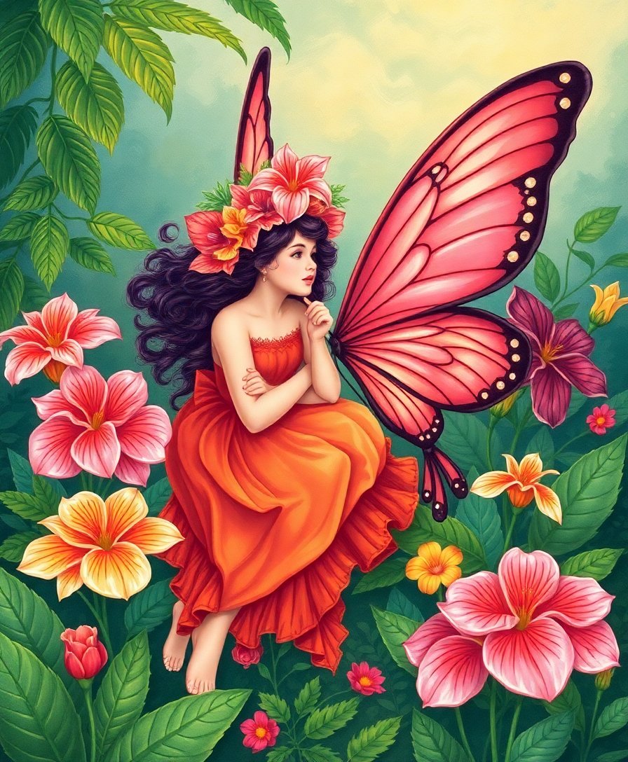 Ultimately, complete lighter tones and final details. Step back to admire your finished masterpiece. Display your tropical fairy artwork with pride.
