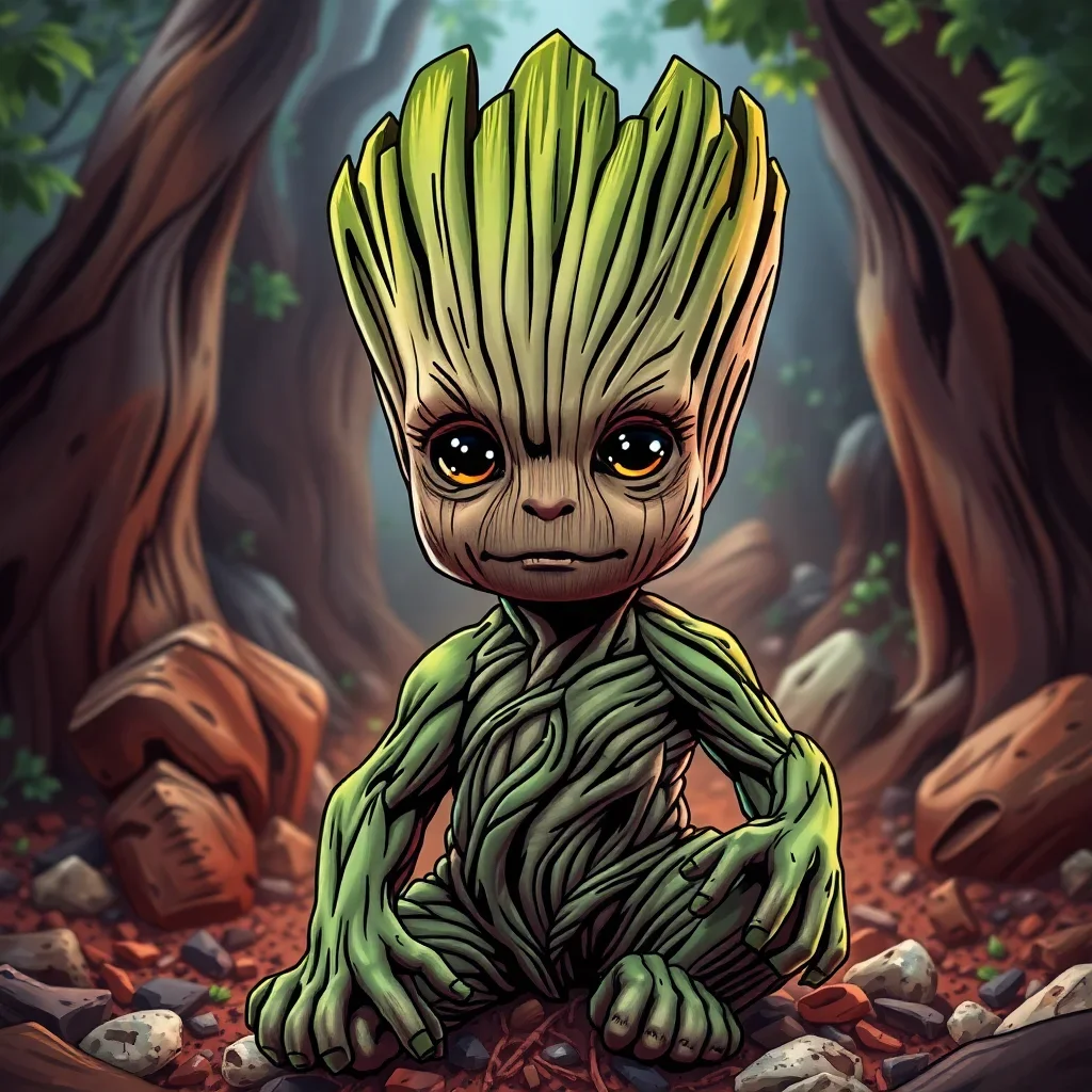 Ultimately, add final details with your smallest brush for precision. Step back frequently to assess your progress. Your completed Baby Groot artwork becomes a conversation starter and Entertainment Art centerpiece.