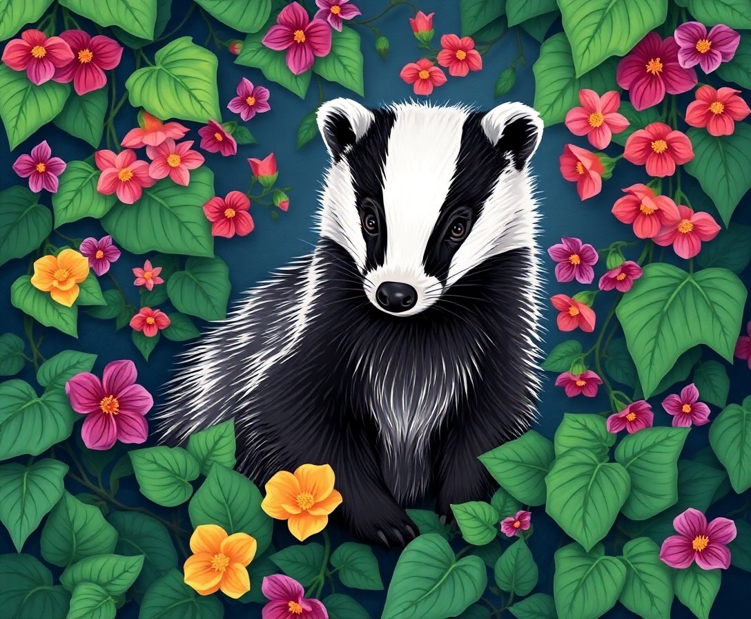 Transform your creative space with this captivating Badger Amidst Passion Vines Paint By Numbers masterpiece. This enchanting design showcases a detailed woodland badger surrounded by intricate passionflower vines. Every brushstroke brings you closer to completing your own wildlife sanctuary.