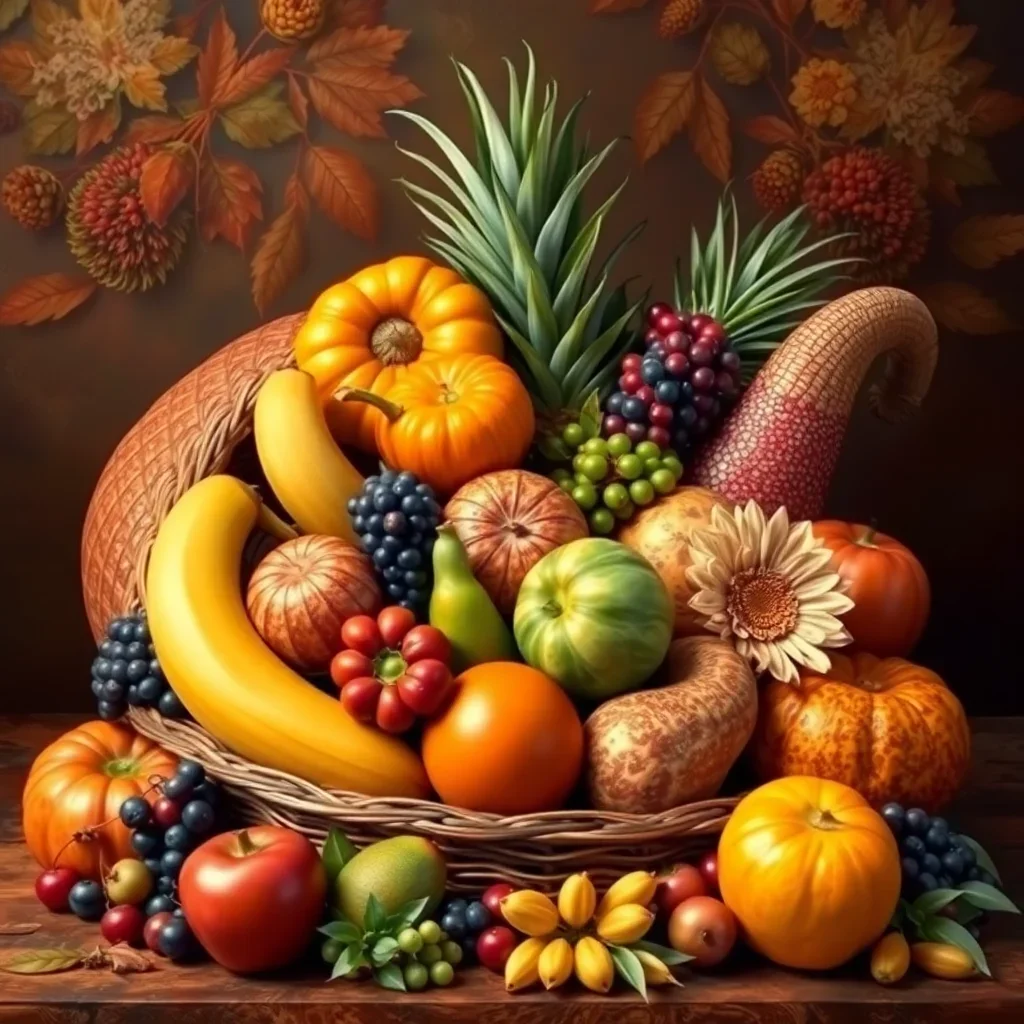 Additionally, this thanksgiving harvest cornucopia design makes exceptional seasonal decor or meaningful gifts for art enthusiasts.