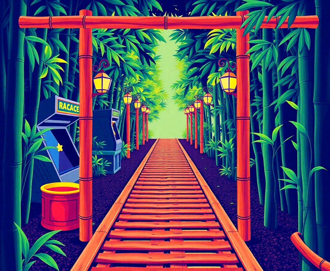 Premium bamboo framing adds natural elegance to vibrant neon colors. Moreover, the tropical racing theme appeals to arcade enthusiasts and art lovers alike. Additionally, high-quality materials ensure lasting beauty. Furthermore, this classic arcade cabinet inspired design makes an excellent conversation starter.