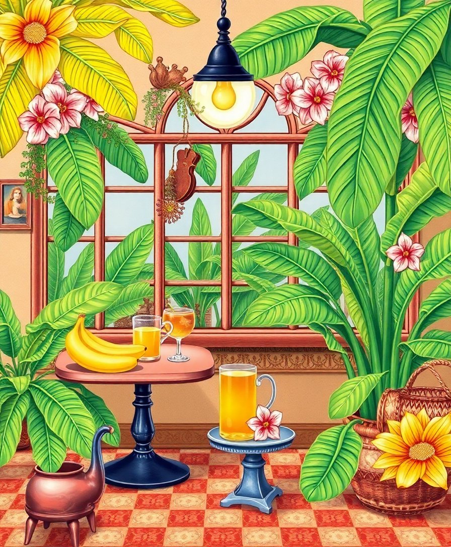This realistic indoor garden design captures nature’s tranquil beauty perfectly. Moreover, the cozy teapot scene adds warmth and charm to your decor. Furthermore, high-quality materials ensure vibrant, long-lasting results. Additionally, the detailed tropical plants create an authentic botanical atmosphere in your home.