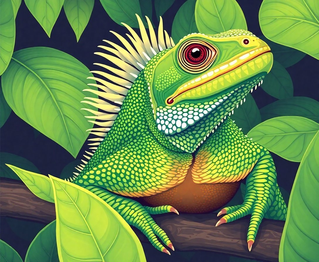 Ultimately, step back and admire your finished tropical masterpiece. Additionally, the completed iguana radiates warmth and natural beauty. Therefore, your artistic achievement deserves prominent display.