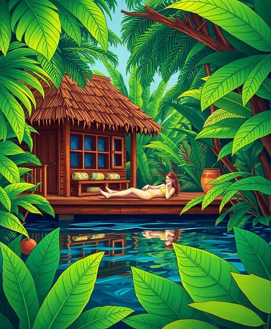 Transform your creative space with this enchanting Bathing Amidst Tropical Ferns Paint By Numbers design. This vintage-inspired artwork captures the serene beauty of a rustic bathroom sanctuary surrounded by lush tropical foliage. Perfect for artists seeking a relaxing painting experience.