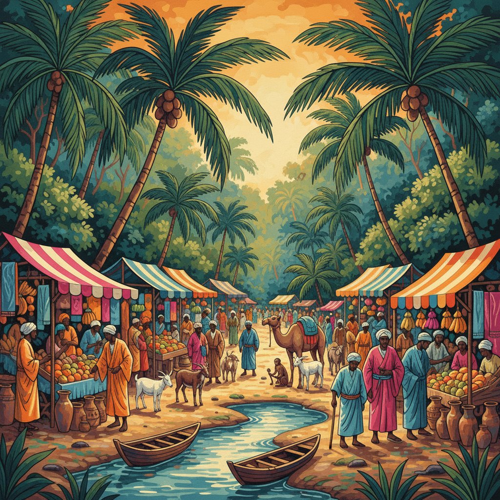 Follow these simple steps to bring your tropical bazaar scene to life. Each phase builds upon the previous one, creating depth and visual interest.