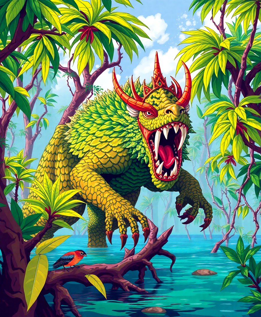 Ultimately, apply finishing touches to wetland vegetation and magical atmospheric elements. Moreover, step back frequently to assess overall composition balance. Finally, your tropical beast comes alive through careful attention to detail.