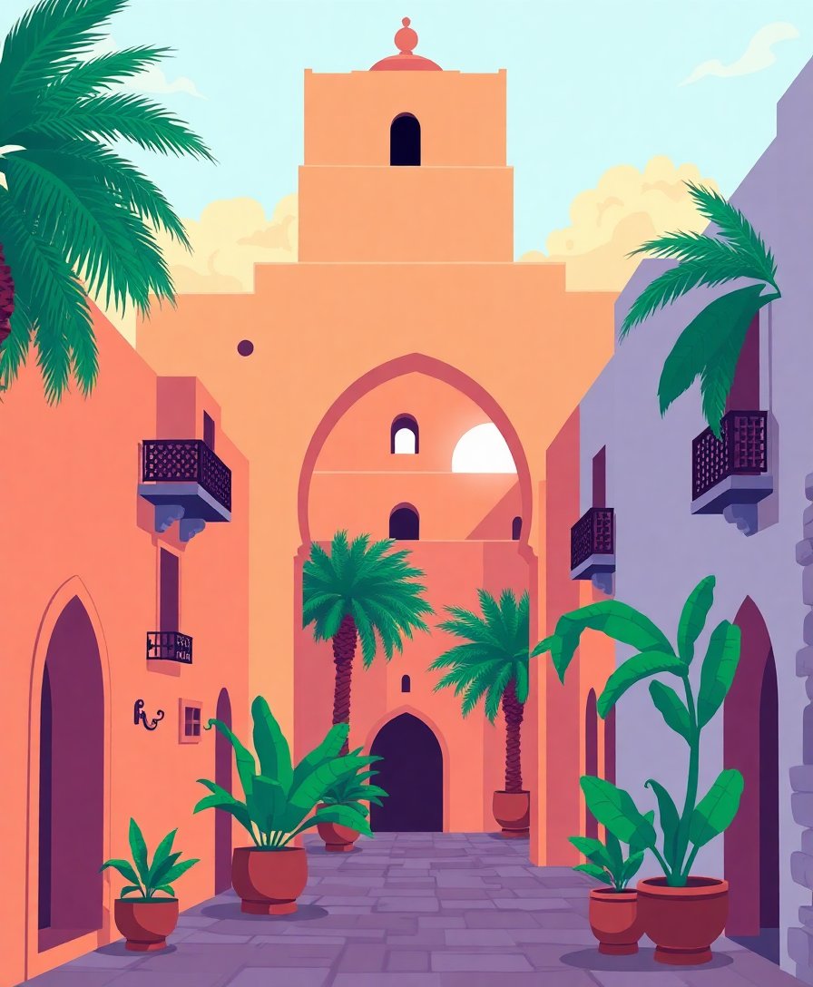 Ultimately, step back and admire your completed masterpiece showcasing lush greenery and traditional archway details. Moreover, the finished piece captures the authentic atmosphere of North African architecture perfectly.
