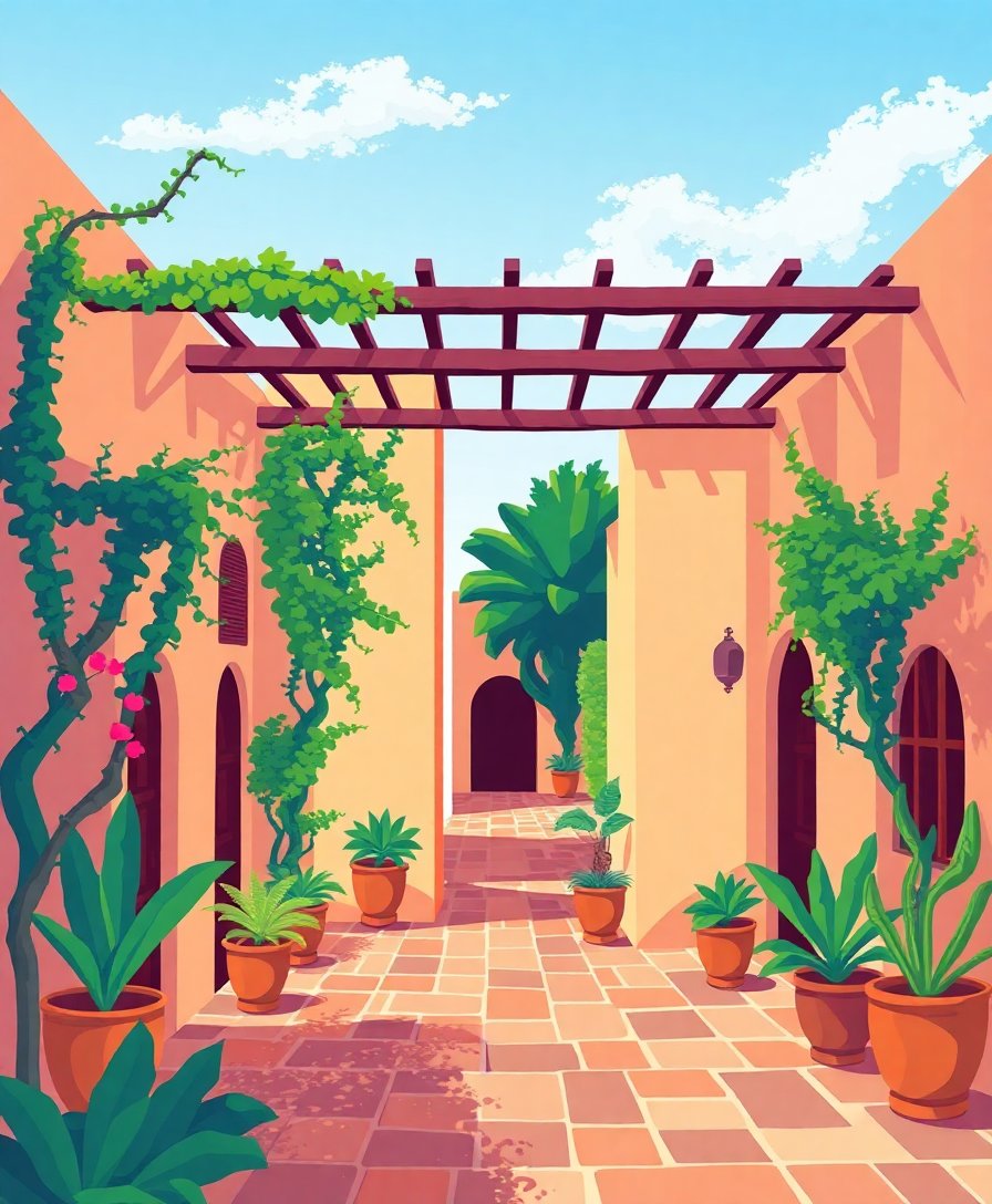 Transform your space with the captivating beauty of North African architecture through Beyond The Vintage Trellis Paint By Numbers. This stunning kit captures the timeless elegance of medina courtyards, where intricate trellis work frames majestic palms in warm sepia tones.